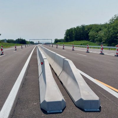 Az M49 gyorsforgalmi út 0+450 – 1+730 km szelvények között a középső elválasztó sávban dupla sorban…