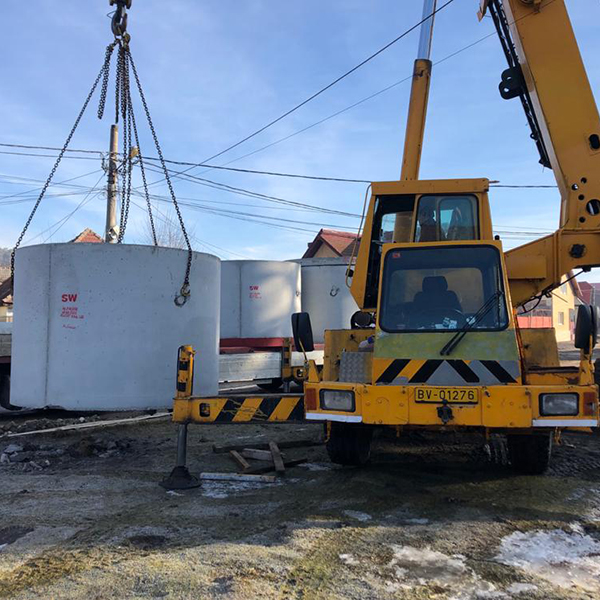 Pentru reabilitarea și extinderea rețelei de distribuție a apei potabile etapa II și extinderea rețelei de canalizare menajeră din orașul Zărnești, jud. Brasov, SW Umwelttechnik România a produs elemente de bazin cilindric și cheson DN 2500 mm, cu plăci necarosabile tip PNB D280/20.
