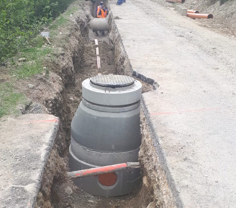 SW Umwelttechnik România a executat și livrat cămine de vizitare cu DN 1000 mm având în componență radiere, inele de supraînălțare, elemente tronconice de reducție, inele de aducere la cotă, trepte si plăci de acoperire carosabile de tip PA 90/20 pentru extinderea rețelei de canalizare și înlocuirea conductei de alimentare cu apă pe strada Valea Porții, comuna Bran, județul Brasov.