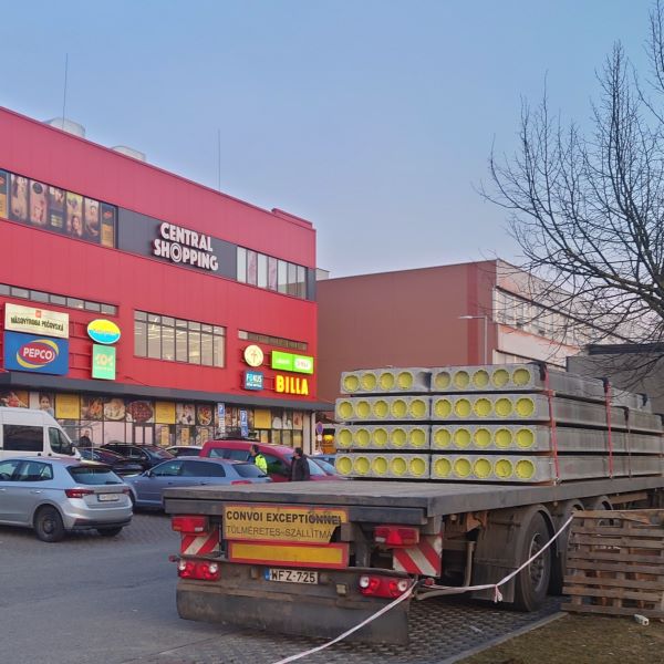 Részt vettünk a CENTRAL SHOPPING projekt megvalósításában, amely a kassai Ťahanovce lakótelep fő bevásárlóközpontja. Az újonnan épülő háromszintes épület helyi központként szolgál majd az itt lakók részére, ahol egy helyen találják meg a BILLA élelmiszerboltot, a TETA drogériát, gyógyszertárat, optikát, fodrászatot és további szolgáltatásokat. Az épület megvalósításához 265 mm vastagságú körüreges födémpanel gyártásával és szállításával járultunk hozzá, 1.430 m² összfelülettel. A panelek kiszállítása érdekében 23 kamiont biztosítottunk, melyek a kivitelezés során a nehezen megközelíthető munkaterületet is sikeresen leküzdötték.