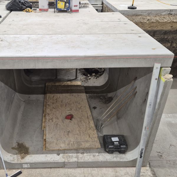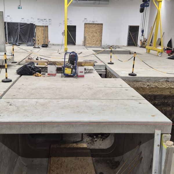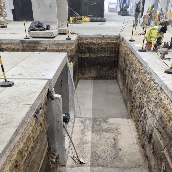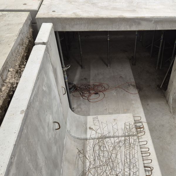 A komáromi Foxconn gyártócsarnokban funkcióváltást követően utólagos nagyméretű gépészeti kábelcsatorna kialakítása vált szükségessé. Ahhoz, hogy minimalizálni lehessen az alépítmény bontását, egy különleges megoldás született. Először a kitermelt föld eltávolítása után egyedi kialakítású GTL típusú támfalelemekkel biztosítottuk az állékonyságot, majd ezekre lettek elhelyezve a nagy teherbírású fedlapok. A kivitelezést megnehezítette, hogy a csarnokon belül csak egy kis mobil bakdaruval lehetett dolgozni.