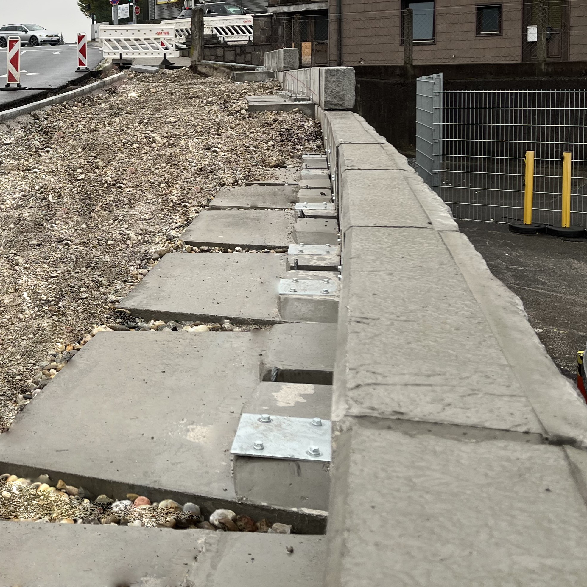 Errichtung einer Stützwand aus Stahlbeton, einschließlich Zaunsockelsteinen, als Abschluss für den Geh- und Radweg entlang der L519 Innbachtalstraße in Wels.