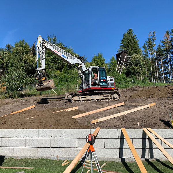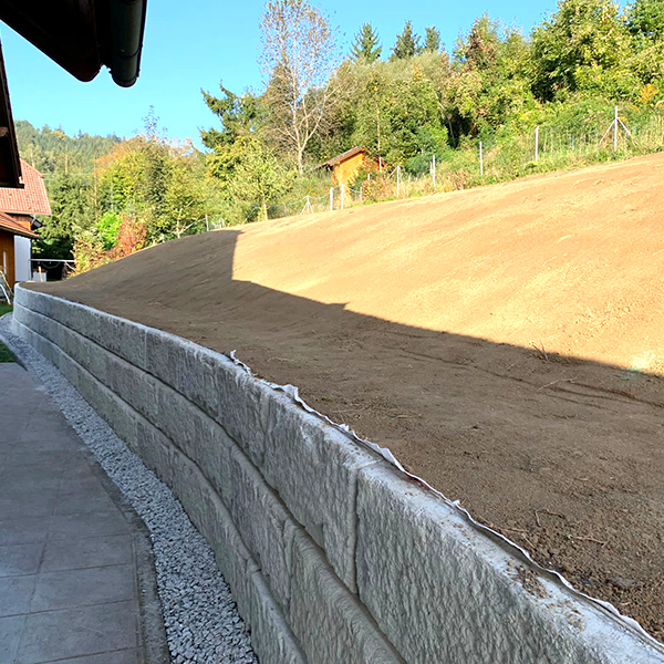 Innerhalb von nur vier Tagen konnte bei einem Privathaus in der Gemeinde Ottnang im Bezirk Vöcklabruck (OÖ) ein Hang durch unser SW-Stützwandsystem gesichert werden.