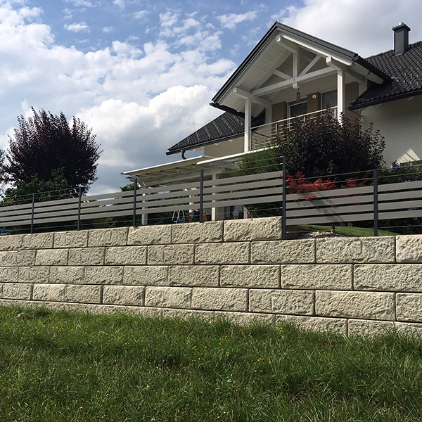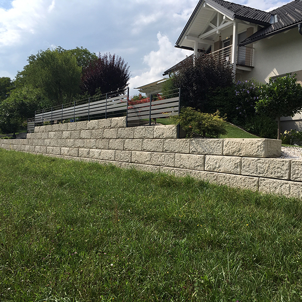 Bei diesem Projekt wurde die Gartengestaltung und der Höhenausgleich mit dem SW-Stützwandsystem realisiert.