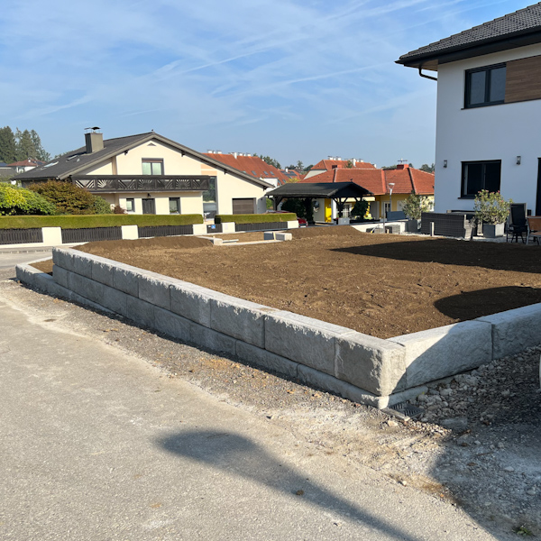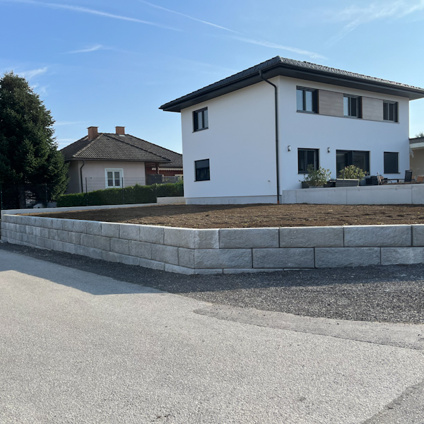 Bei einem Privathaus in St. Peter an der Au in Niederösterreich wurde unser SW-Stützwandsystem sowie unsere SW-Abschlußsteine als Einfriedung für das Grundstück genutzt.
