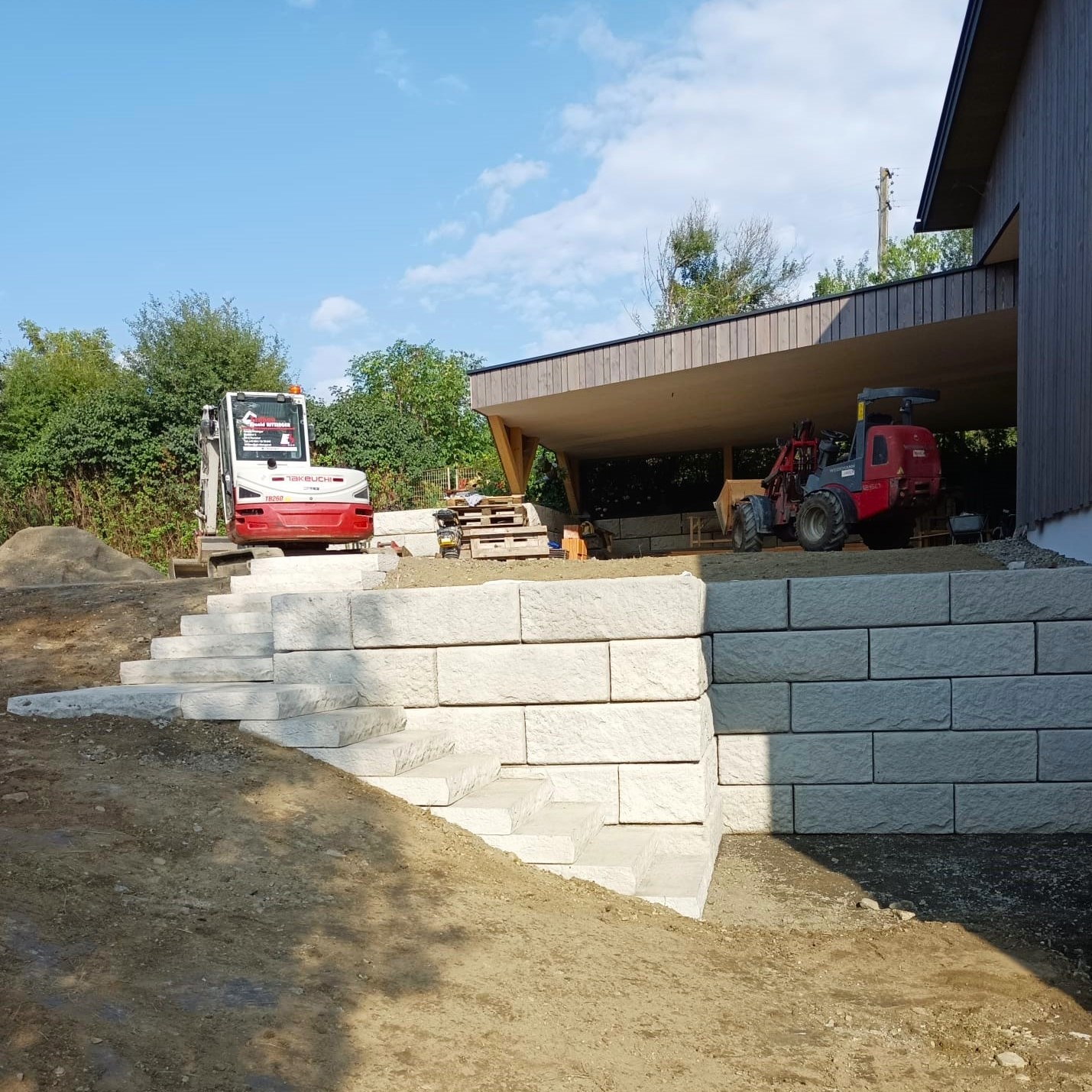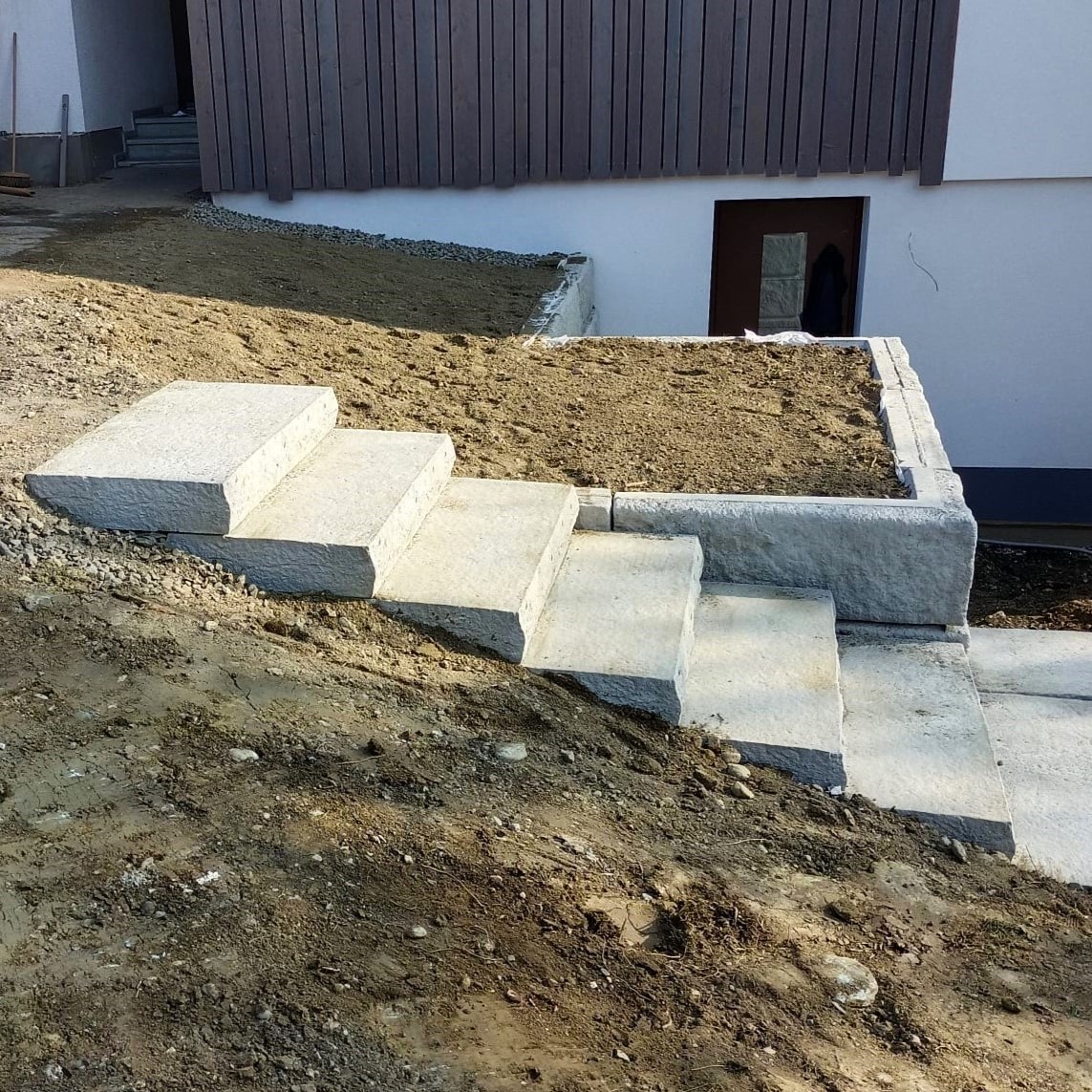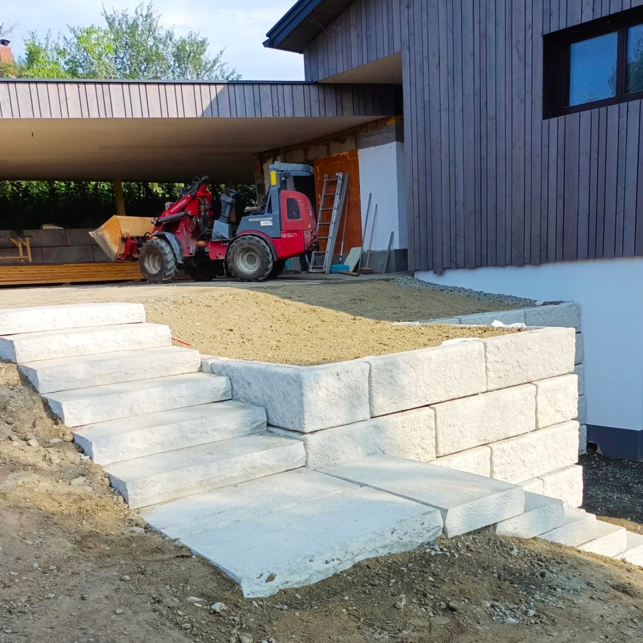 Dank des SW-Stützwandsystems konnte hier ein platzsparender Auf- bzw. Abgang von der Einfahrt zum Kellerzugang geschaffen werden. Durch die SW-Stufenplatten wurde der vorhandene Platz optimal ausgenutzt.