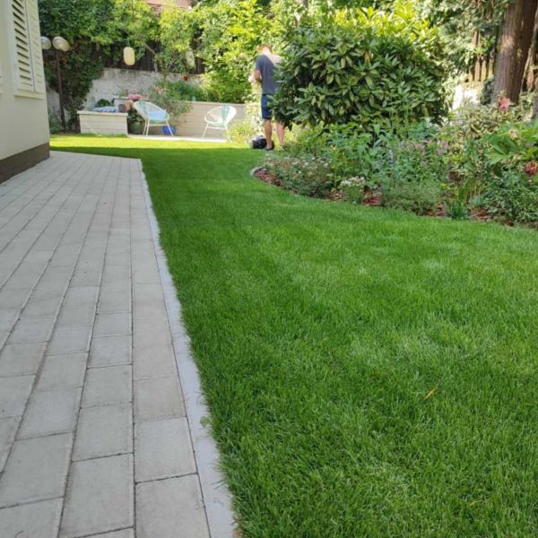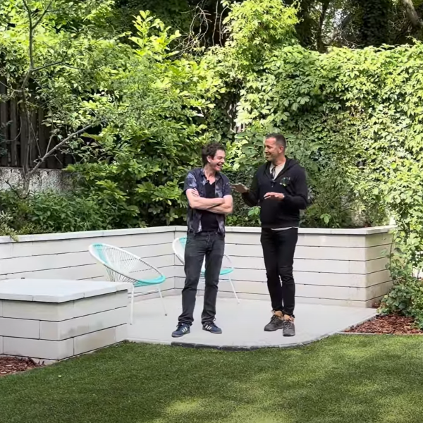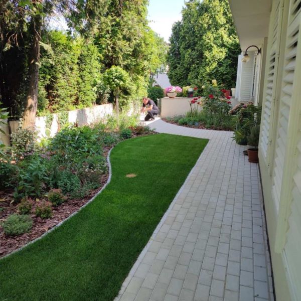 A népszerű műsorvezető kertjét Szomoru Miklós kerttervező komponálta újra, ahol a textúrák, formák és színek tökéletes egységet alkotnak. A terv alapján a növények mellé járda, gyepszegély és kerti pihenők épültek. A gyepszegély Tokajkő, a kerti építményekhez és burkolathoz választott térkő pedig felhő színű Solymoskő.