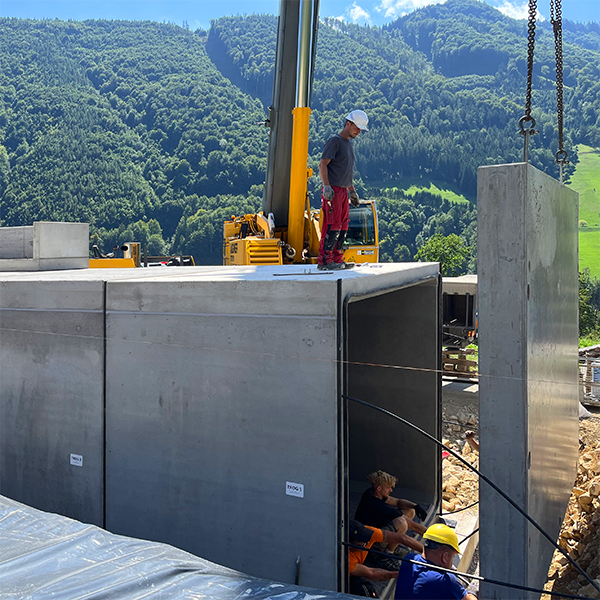 Für die Gemeinde Reichraming wurde im Ortsteil Oberau ein neuer Trinkwasserhochbehälter mit einer Trockenkammer und zwei Wasserkammern mit jeweils 40 m³ errichtet. Zur Ausführung kam ein SW-Trinkwasserspeicher in Beton, als Spannbetonsystem in modularer Bauweise gefertigt.