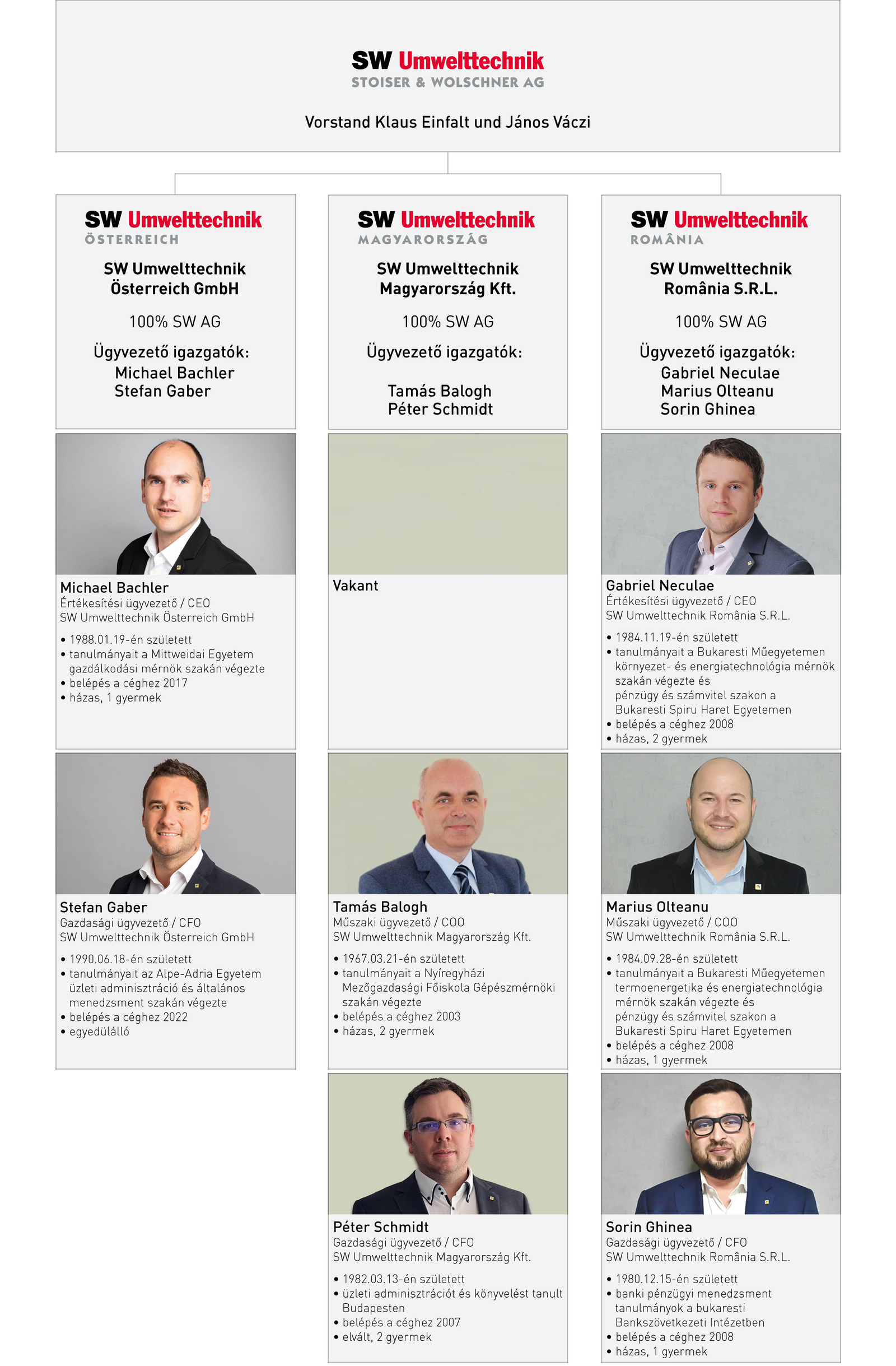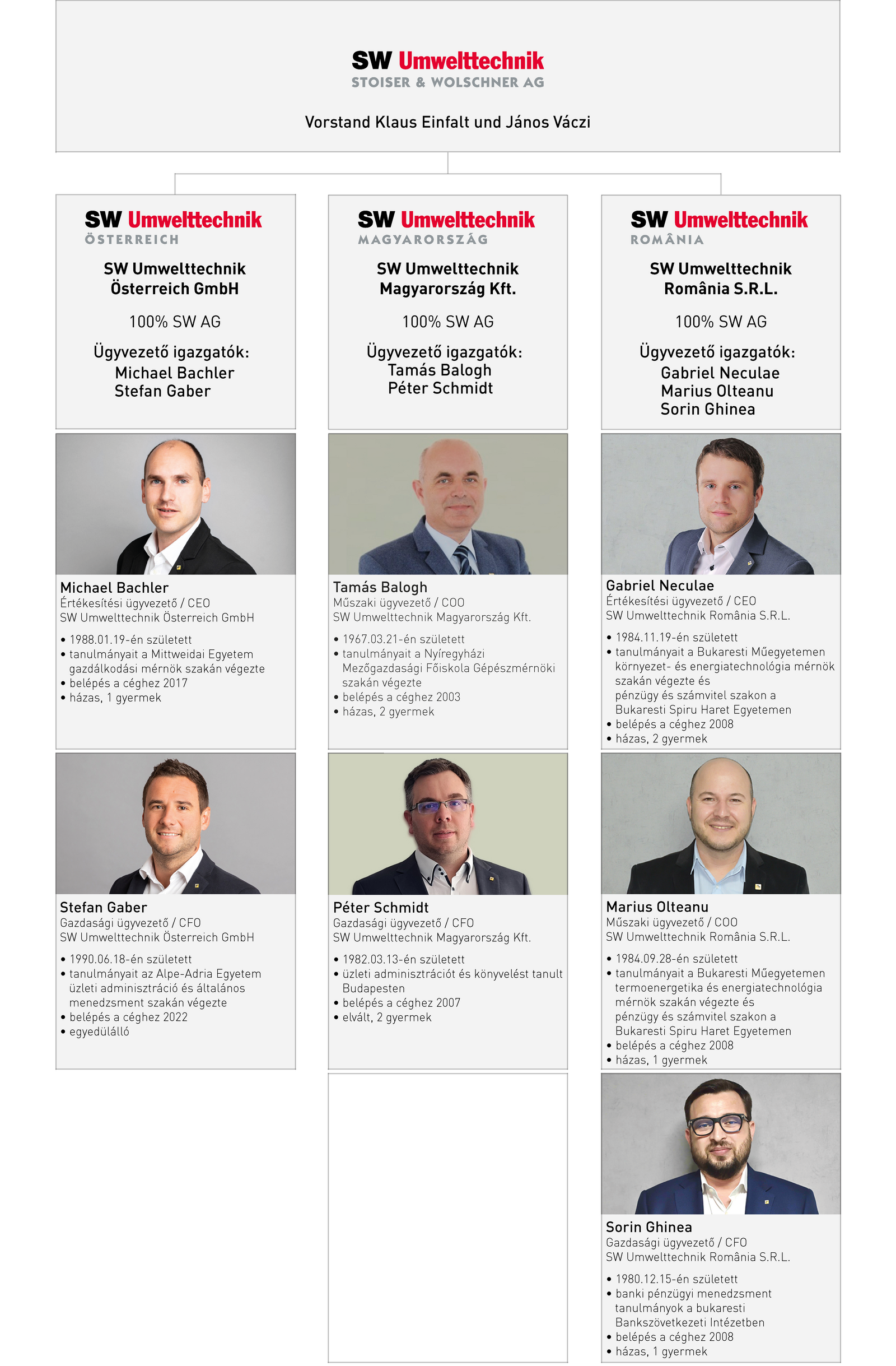 Egy nemzetközi csapat Európa szívében: A három országban (Ausztriában, Magyarországon és Romániában) található kilenc telephelyünkön az SW Umwelttechnik márkanév alatt betonelemeket fejlesztünk és állítunk elő infrastrukturális fejlesztésékhez földfelszín alatti és feletti alkalmazásra.